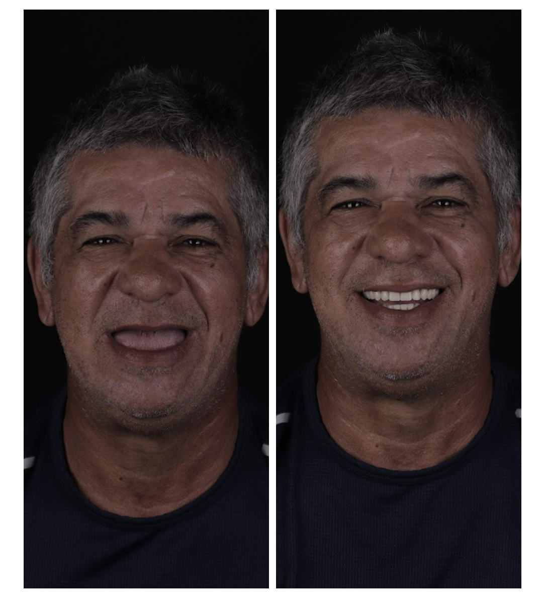 O tratamento começa com exames de imagem e planejamento digital em 3D. Com base nisso, são instalados de 4 a 6 implantes para sustentar a prótese fixa.